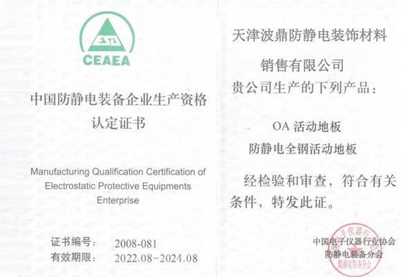 天津波鼎防靜電裝飾材料銷售有限公司是防靜電協會會員單位,阿里巴巴認證企業。專業從事防靜電地板,抗靜電地板,全鋼防靜電地板,全鋼無邊防靜電地板,全鋼直鋪防靜電地板,全鋼防靜電活動地板,OA網絡地板,樓宇OA活動地板,OA網絡活動地板,復合防靜電地板,復合抗靜電地板,硫酸鈣防靜電地板,酸鈣抗靜電地板,鋁合金防靜電地板,鋁合金抗靜電地板,陶瓷防靜電地板,陶瓷抗靜電地板,PVC防靜電地板,PVC抗靜電地板,機房彩鋼板,網絡地板,架空地板,機房防靜電地板,通風防靜電地板,防靜電架空地板,的生產、開發、銷售、技術咨詢及服務。 公司匯集了一批專業技術人員為顧客提供防靜電地板系列產品的設計以及安裝維護,產品銷往天津,河北廊坊、唐山、邢臺、承德、張家口、秦皇島、石家莊、衡水、滄州、保定等地。 多年來,公司以優質的產品,具有競爭力的價格,及時周到的服務贏得了新老客戶的信賴和支持。公司產品種類齊全,覆蓋面廣,已廣泛